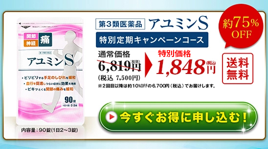 一定の距離を歩くと腰から足にかけてしびれや痛みを感じるようになりました。少し休むとよくなるのですが、少し歩くとまたしびれが...。病院を受診したのですが、いずれも「年のせいだから上手く付き合っていくしかない」と言われてしまって…、そこでずっと気になっていたアユミンSを3ヶ月前から飲み始めたんです。